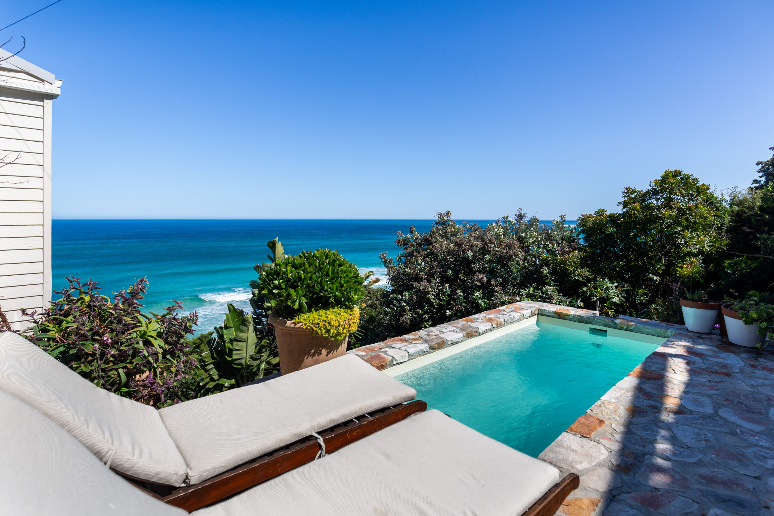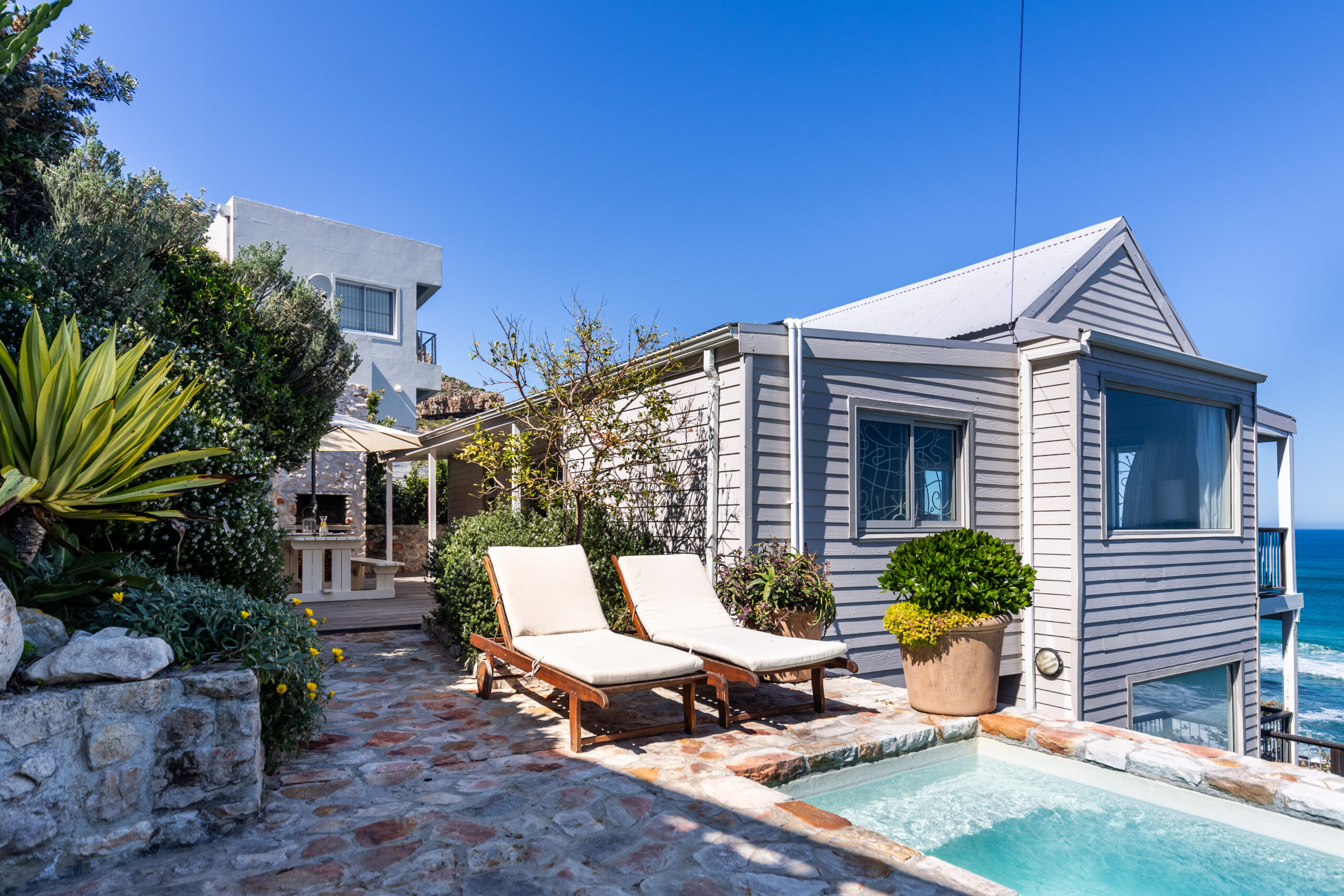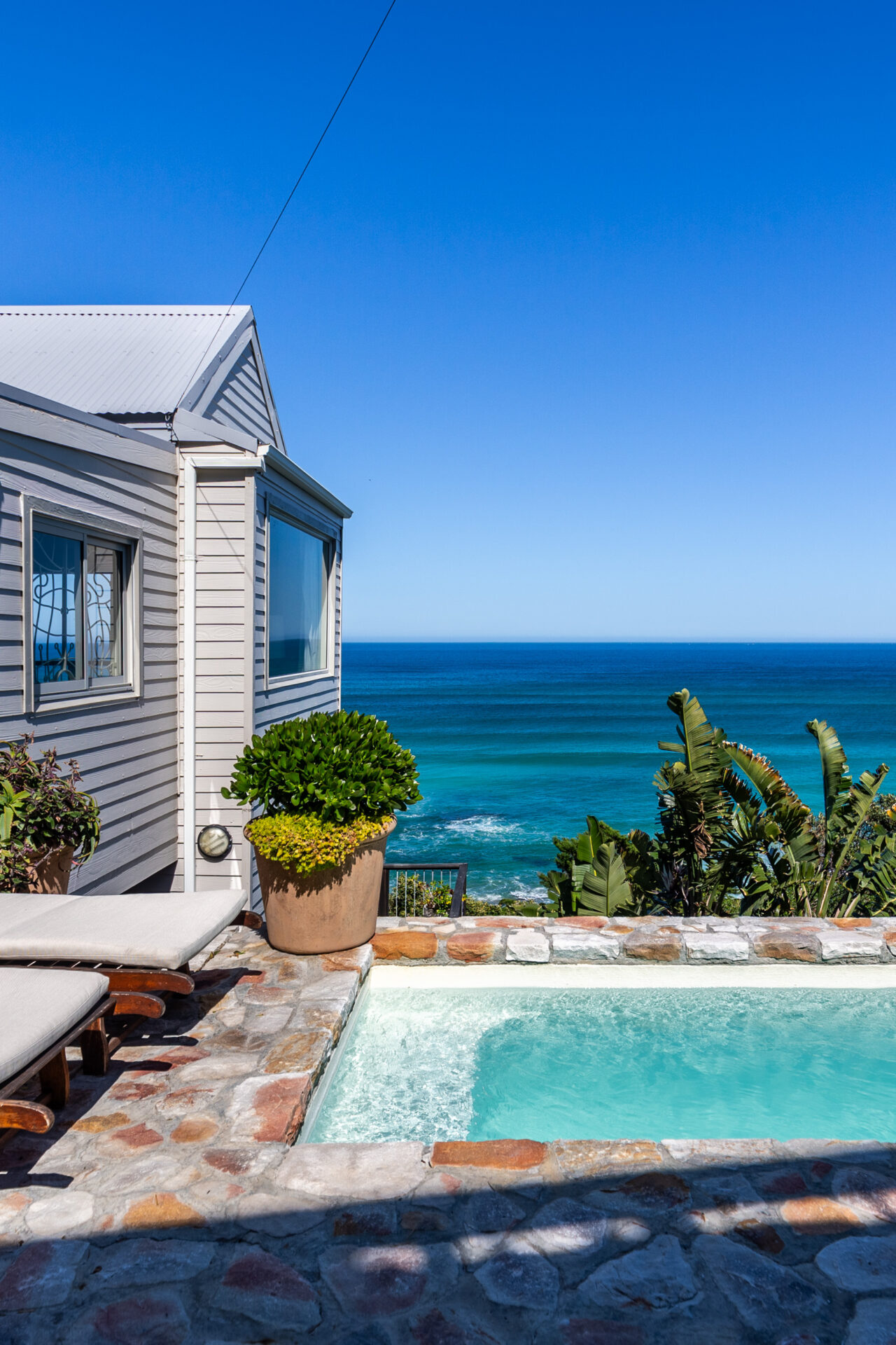 This one-of-a-kind, malibu-styled beach bungalow is right on the shore of the breathtaking Misty Cliffs coast. The bungalow has 180 Degrees of ocean blue views and is West-facing for those soul-stirring Summer sunsets.