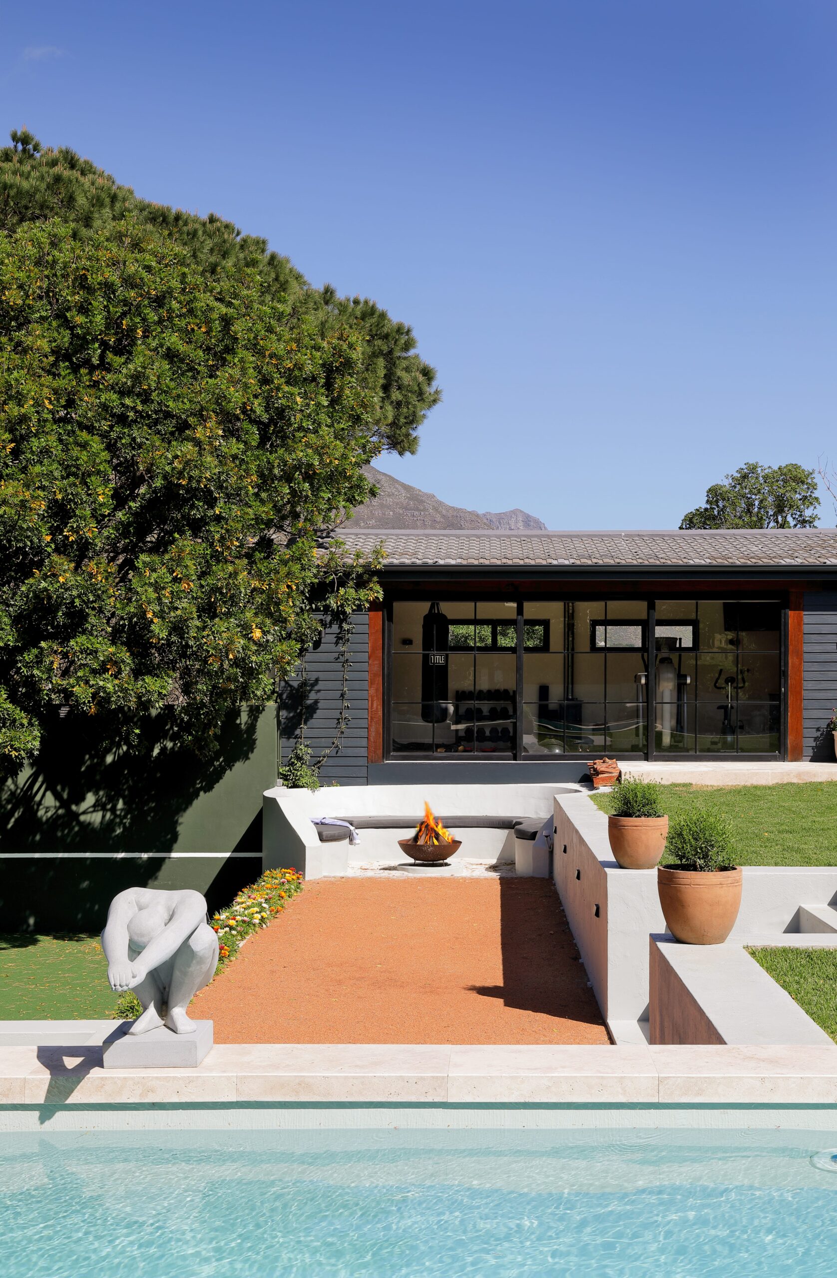This breathtaking estate is an idyllic retreat designed for relaxation, adventure, and family-friendly charm. Surrounded by lush gardens, it offers a range of unique features, from a large swimming pool with an integrated water slide and wood-fired hot tub to a tennis practice wall and pétanque court. Guests can enjoy a variety of outdoor activities, including a putting green, trampoline, and fire pit for cosy evenings under the stars. A fully equipped outdoor kitchen with a braai and pizza oven is perfect for al fresco dining. With dedicated staff, including a nanny and gardener, every detail is taken care of, ensuring an effortless and memorable stay.